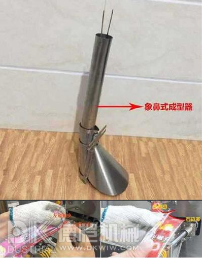 成型器是立柱式顆粒包裝機(jī)的關(guān)鍵構(gòu)成部分,要是沒有調(diào)整好,制出去的包裝袋子便會不好看,彎曲不兩端對齊等。針對制出去的包裝袋一般碰到的難題便是包裝袋背封(縱封)上下不勻稱或者包裝袋子上下兩側(cè)不平衡(以下下圖),導(dǎo)致這種難題的關(guān)鍵緣故便是中小型立柱式顆粒包裝機(jī)象鼻式成型器沒有調(diào)整到規(guī)范的情況造成的。一個象鼻式成型器的標(biāo)準(zhǔn)狀況便是,成型器反面是不是在軸線,側(cè)邊看成型器的平面度、俯瞰導(dǎo)向性角在橫封封合網(wǎng)上這三個規(guī)范。